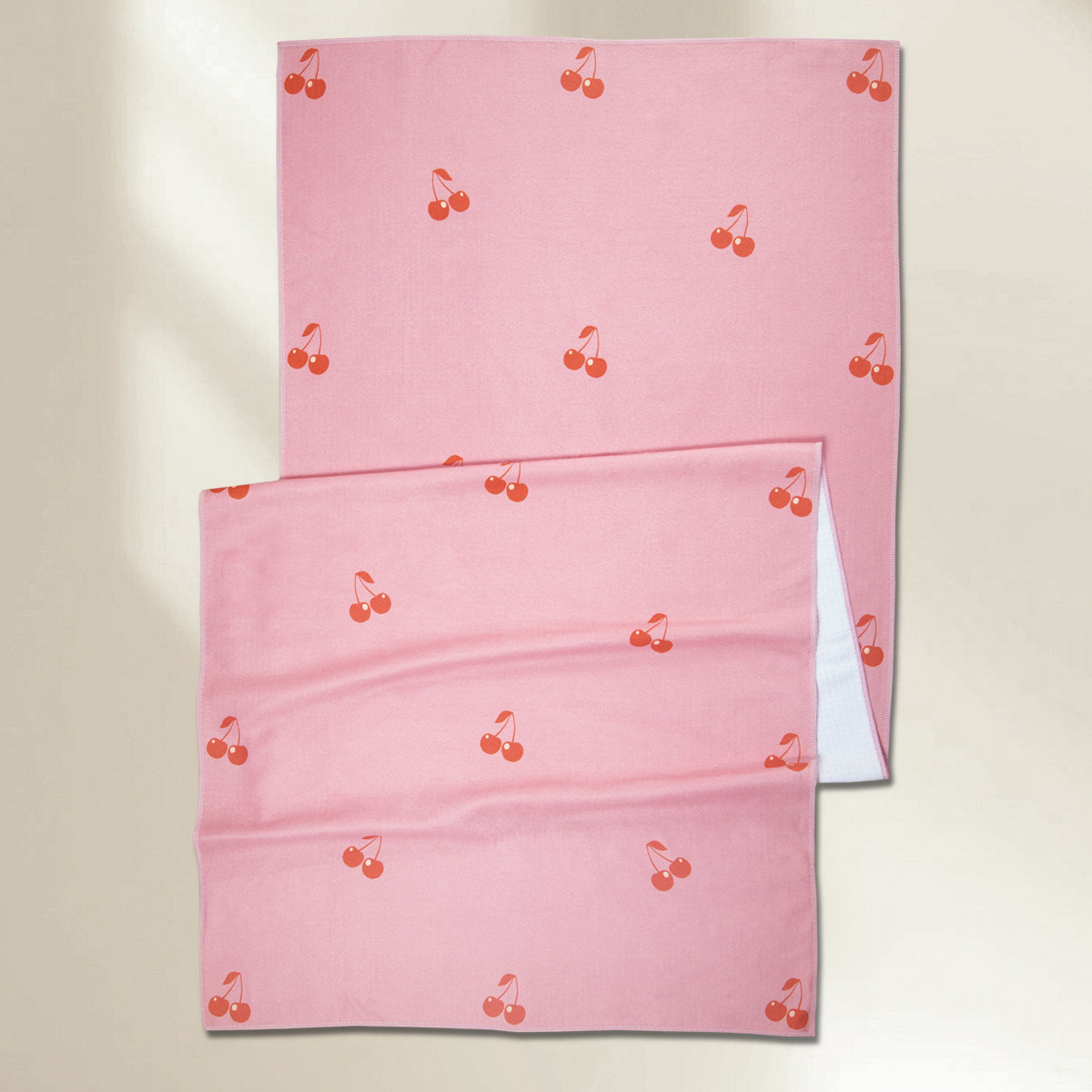 Get ready to have some fun during your pilates workout with Summer Cherries! This delightful towel features a playful pink background with a cherry pattern and grips to keep you steady. It's the perfect accessory to add a touch of quirkiness to your fitness routine.